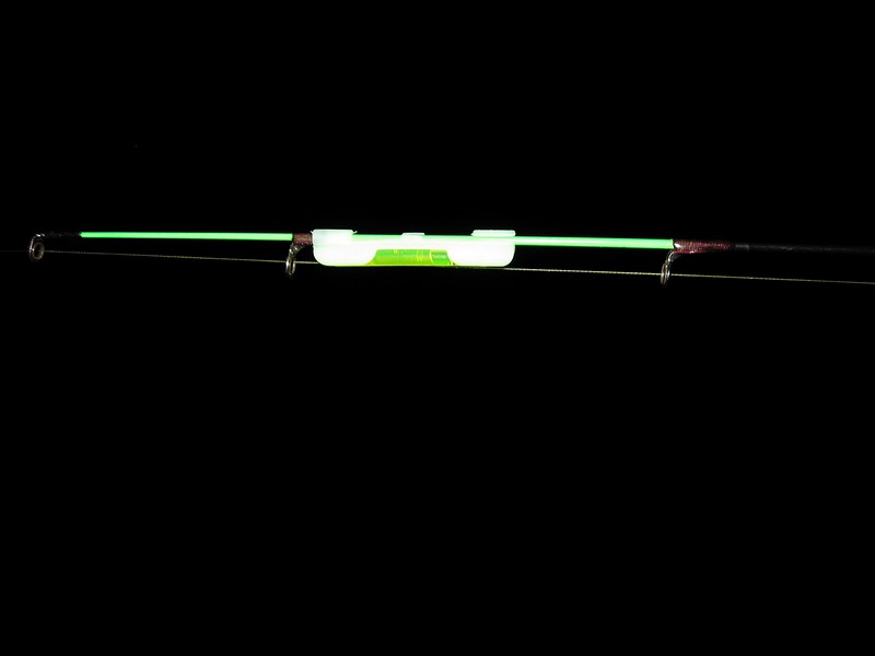 Несмотря на то, что описанные в предыдущем разделе капсулы-«светлячки» предназначены не только для ночной поплавочной, но и фидерной рыбалки, от их использования в донной ловле отказался давно. Во-первых, специальный пластиковый крепеж, входящий в комплект капсулы, не всегда плотно защелкивается на вершинке фидера и прокручивается. Но даже если под него подложить несколько витков того же скотча или решить проблему посредством фиксации между вторым и третьим, либо третьим и четвертым кольцами, крепеж создает неудобства в процессе рыбалки. Об него перехлестывается плетенка или леска, возрастает вероятность слома квивертипа. Во-вторых, контроль поклевки посредством наблюдения за «светлячком» на вершинке не эффективен, особенно при ловле на озере, когда фидер располагается параллельно линии горизонта. На фоне усиливающегося в темноте напряжения глаз светящаяся капсула начинает «плавать». Создается иллюзия поклевки.