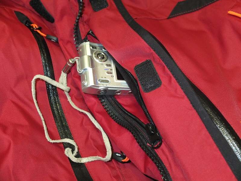 Подкладочная ткань везде мягкая и приятная на ощупь, видя ее и зная об отсутствии преград между ней и мембраной, понимаешь, что наличие указанных характеристик последней не рекламный ход – костюм должен дышать много лучше в отличие, например от моего предыдущего «Экстрима», где с этим были проблемы, обусловленные, я думаю, тем, что слишком много в нем было препятствий для нормальной циркуляции воздуха – верхняя отстегивающаяся мембранная часть была выполнена в виде холодной штормовой куртки с подкладкой, внутренняя теплая часть имела сверху что-то вроде болоньевой ткани, все это сводило на минимум и так не выдающиеся возможности применяемой там производителем ткани. У DISCOVERY все устроено по-другому, чувствуется, что этот костюм уже не «проба пера» для изготовителя, а продуманное добротное изделие, выполненное с применением хороших тканей и фурнитуры.