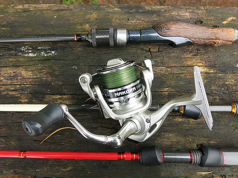 Первым удилищем, доукомплектовавшим катушку, стал спиннинг Lucky John One Sensoric 712 LF – длиной 2,16 м и тестом 2-10 г. В дальнейшем использовал «Макору» для джиговой ловли неплохого окуня, и так же с этим удилищем.