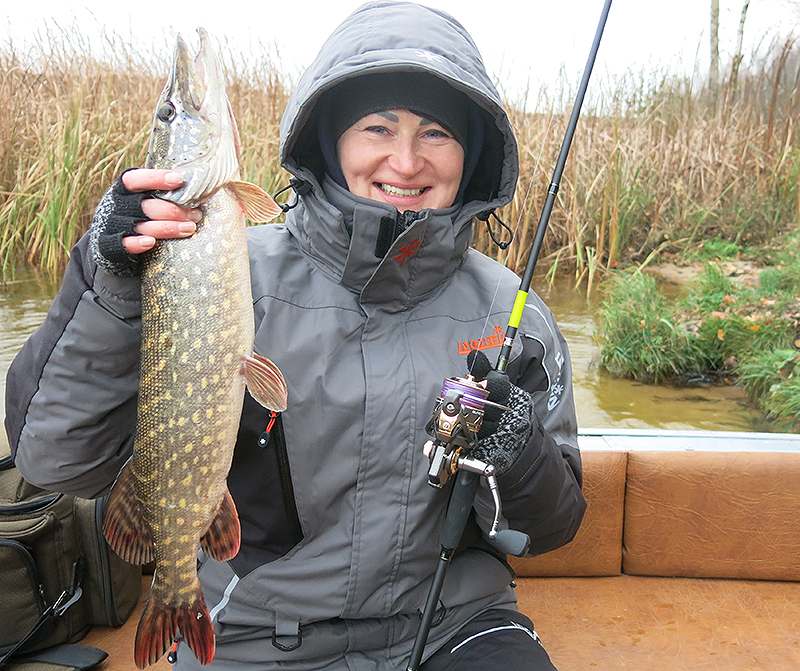 Весной же много внимания уделил вращающимся блеснам. Собрали с женой для таких рыбалок два комплекта: один полегче, до 12 г, второй – как раз со спиннингом Jig&Twitch 22. Несмотря на быстрый строй удилища, работа бланка с вертушками понравилась. Самыми подходящими были блесны 4-го номера весом 10-11 г: и чувствительность при проводке хорошая, и летели они ничуть не хуже, чем при забросе «лайтовым» спиннингом.