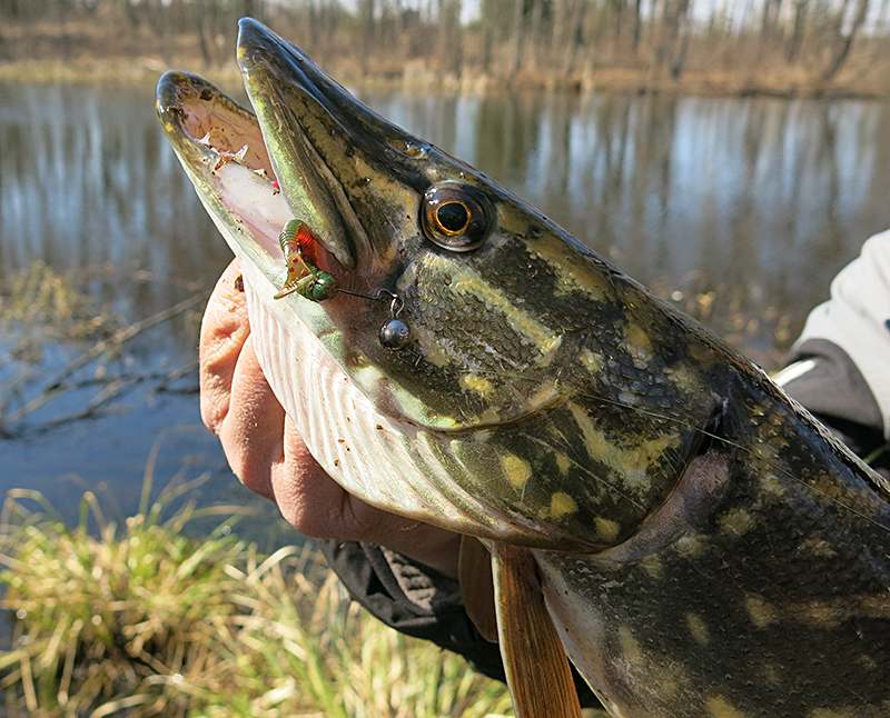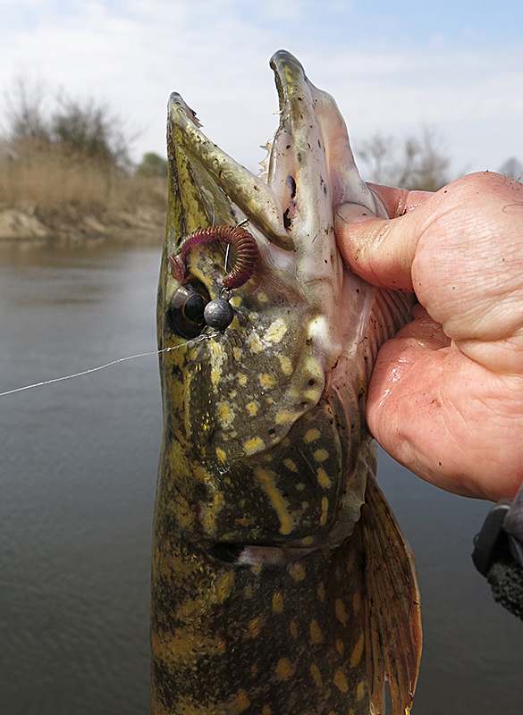 В дальнейшем этот цвет лучше всего показал себя в мутной воде весенних рек. Переключившись к середине апреля на речной микроджиг, основной приманкой для пробивания перспективных мест был маленький «Спарк Тэйл», снова показавший себя как универсал по разному хищнику.