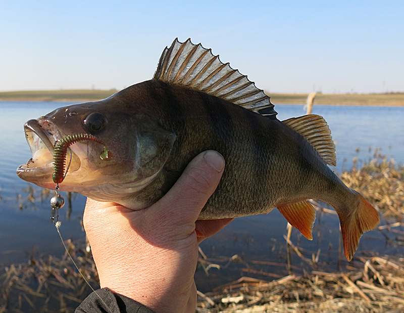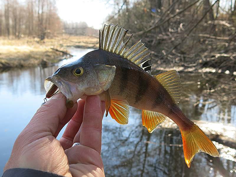 Чуть позже пришел черед и окуня. Было бы удивительно, если бы этот хищник не заинтересовался данной приманкой. Довольно быстро маленький «Спарк Тэйл» стал главным окуневым «разведчиком» в незнакомых местах: как на быстрых реках, так и на расположенных на них водохранилищах. Идеально он облавливал речные ямки, доставая с них окуней уже на первых проводках. Экземпляры попадались тоже неплохие – до 600 г.