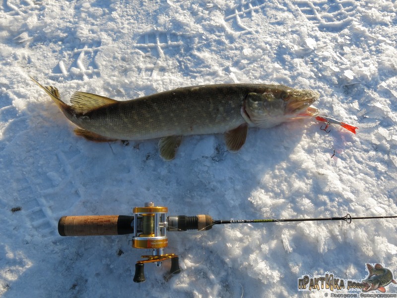 Первое время пользовался незамысловатой зимней удочкой со встроенной катушкой – Salmo Ice Lider c диаметром шпули 75 мм. Вариант подходящий, но он, скорее, универсальный, чем именно щучий. От поклевки трофея никто не застрахован, и сильного удара или рывка хищницы такой удильник может не выдержать. Тут нужно что-то помощнее.