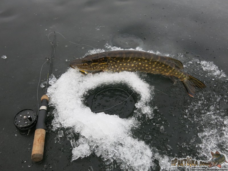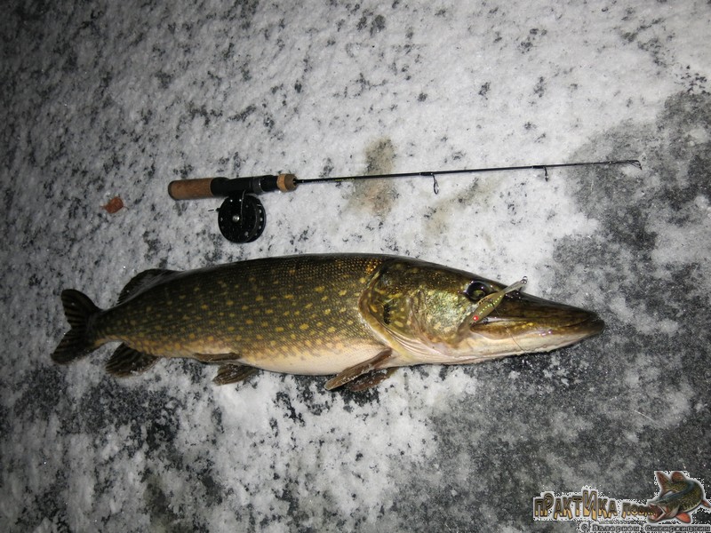 Первое время пользовался незамысловатой зимней удочкой со встроенной катушкой – Salmo Ice Lider c диаметром шпули 75 мм. Вариант подходящий, но он, скорее, универсальный, чем именно щучий. От поклевки трофея никто не застрахован, и сильного удара или рывка хищницы такой удильник может не выдержать. Тут нужно что-то помощнее.