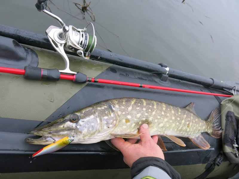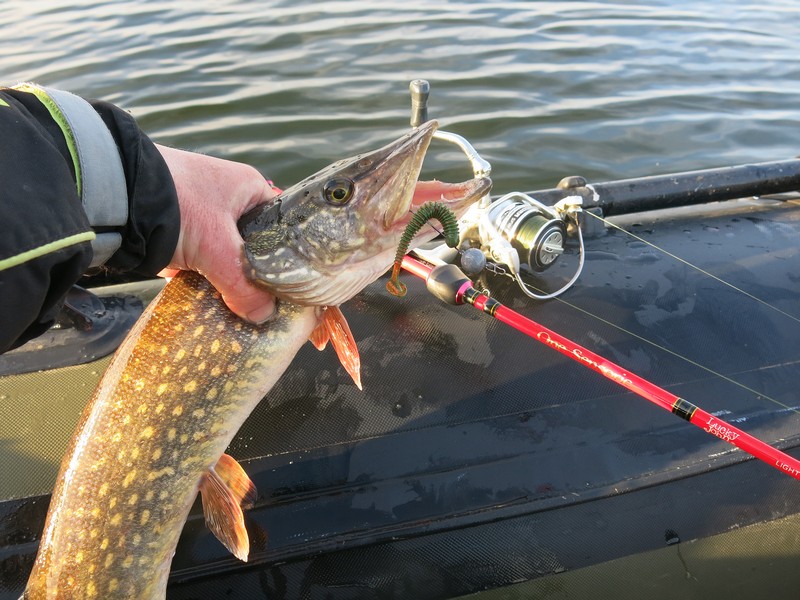 Да и сам я меньшими весами ловлю реже – для этого есть специальные микроджиговые спиннинги. Основные грузы – 10-12 г, плюс приманка до 4-х дюймов. В джиговой ловле люблю хорошую чувствительность вершинки, и лайтовая ловля здесь не исключение. В итоге «красный Сенсорик» стал моим основным удилищем для ловли щуки с берега. В щучьем лодочном джиге чаще всего использую его в ветреную погоду и на мягком дне.