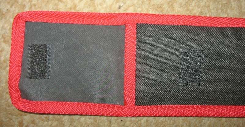Чехол изготовлен из плотной ткани со стильной красной окантовкой. Клапан на липучке, что, на мой взгляд, практичнее, чем завязки.