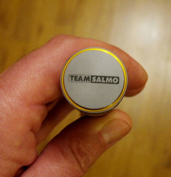 Торец комля закрыт стильным колпачком с логотипом Team Salmo.