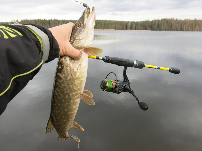 Один из главных показателей любого спиннинга – это засекаемость той или иной рыбы в незацепляющемся варианте приманок, то есть на офсетном крючке. С окунем обычно проблем не возникает, а вот щука и судак уже более капризные в этом плане. И хоть это непрофильные рыбы для микроджига, этой весной именно щука стала основной в ловле на легкие приманки. И результативность поклевок хищницы была очень хорошая. Пожалуй, одна из лучших среди всех удилищ, которые я перепробовал. На вываживании щук до полутора килограмм бланк тоже отрабатывал неплохо, не допуская ни сходов, ни перегруза снасти. При этом чувствовался запас прочности бланка. Именно поэтому можно рекомендовать Progress Microjig 7 в тех ситуациях, когда не исключены поклевки крупной рыбы.