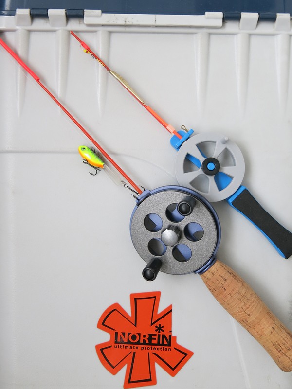 Сами модели удочек я не обновляю уже, наверное, лет 8-10. Может, в этом плане я и консерватор, но современные веяния в виде безкивковых удильников с длинными хлыстиками и резными рукоятками (я их называю «кобылками») мне не совсем нравятся. Поэтому по-прежнему продолжаю пользоваться довольно короткими зимними удочками с катушками. Во-первых, потому, что с них удобно быстро стравливать леску, например, при переходе с лунки на лунку с увеличением глубины, да и вообще удобно леску наматывать и сматывать. К мотовильцу так и не привык. Кроме того, катушкой получается точно настроить нужное положение удочки относительно лунки, что немаловажно при ловле сидя или с колена.