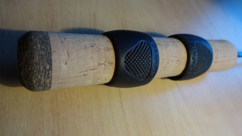 Рукоятка удочки выполнена из натуральной пробки и снабжена двумя подвижными зажимами из специального графита, которые позволяют установить на удилище практически любую зимнюю катушку.