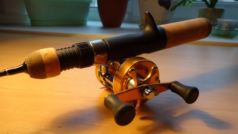 Получился неплохой, слегка облегченный вариант для ловли на средние балансиры, с расположением катушки как в классических удильниках. С одним маленьким «но» – желательно подбирать зимнюю проводочную катушку с учетом предполагаемой ловли и весом используемых приманок, а так же надежным «тормозом» в самой катушке.