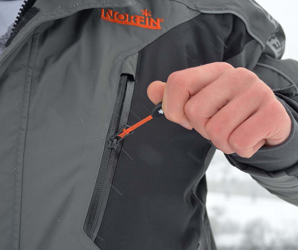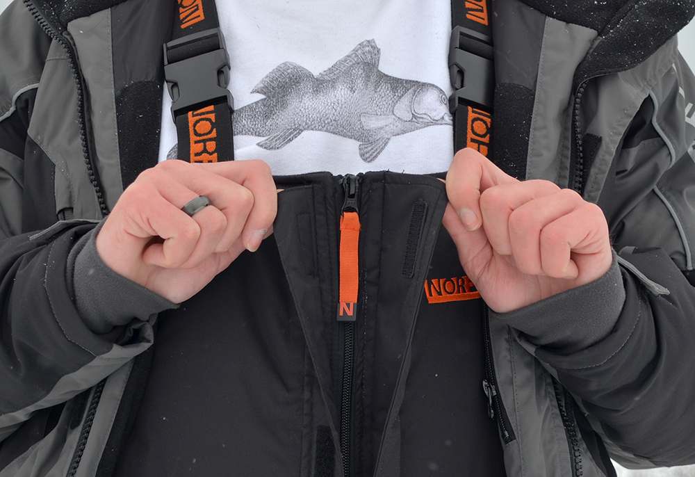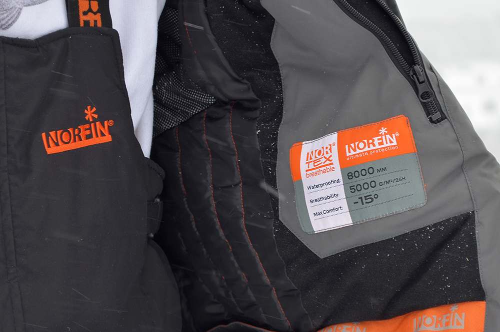 Apex как раз и стал таким костюмом ввиду особенностей кроя и кое-каких деталей. Он не относится к подчеркнуто зимним костюмам и позиционируется как комплект для европейской зимы или межсезонья. К слову, на бирке так и указано – Max Comfort -15. То есть эта цифра – самый низ комфортной спиннинговой ловли не только с точки зрения обмерзания пальцев, но и наличия жидкой воды в принципе. Эту цифру можно увеличивать через подбор дополнительных слоев утеплителя.
