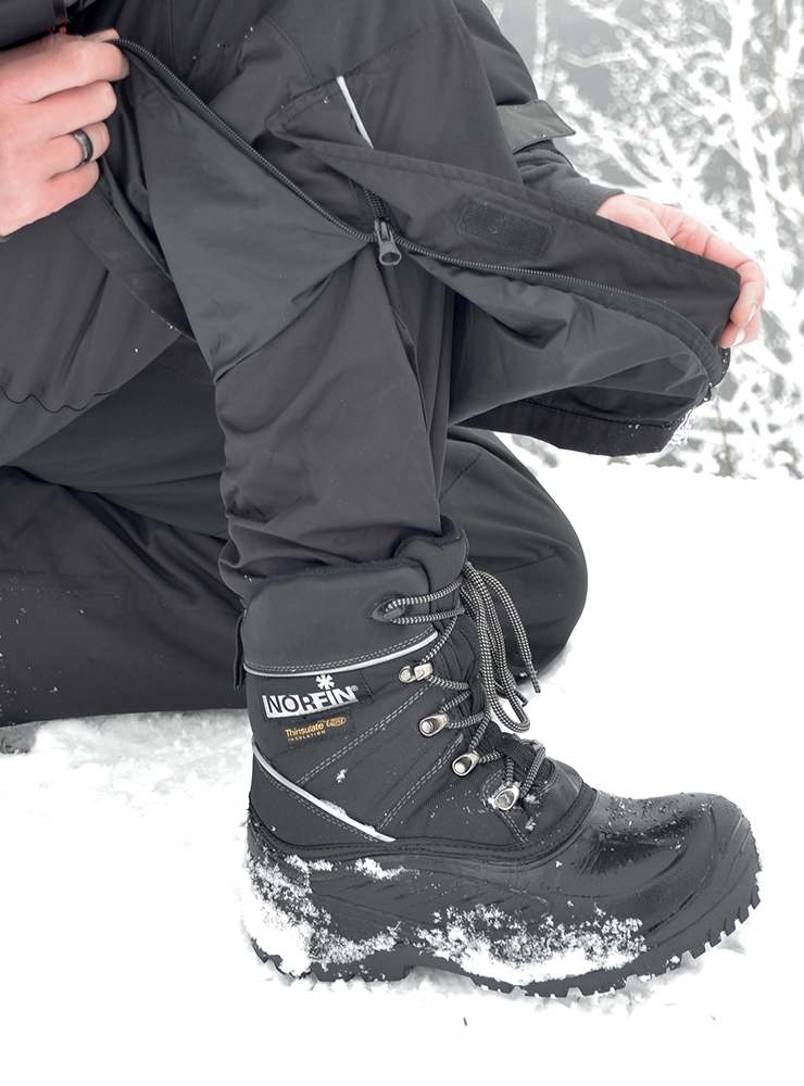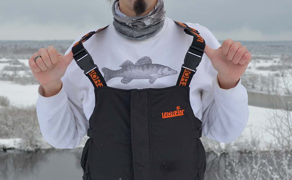 С теплыми костюмами сейчас вроде как нет проблем – тот же Norfin и куча прочих брендов дают широченный выбор. Но есть сложность – зимние костюмы часто предполагают активный отдых только в описании. По факту же это своеобразные скафандры, защищающие от холода, ветра и дождя. А вот активничать в них тяжеловато уже в примерочной, потому как их носка предполагала либо покатушки на снегоходах, либо подледную рыбалку. Первое предполагает минимальное движение, а второе – движение в основном ногами. И хотя шевелить ногами в зимнем спиннинге иной раз приходится не меньше летних занятий, ограничение свободы рук не идет на пользу и усталость накатывает заметно быстрее, чем в теплое время. Таким образом, нужен теплый, но спиннинговый костюм, позволяющий свободно размахивать руками. А еще ж нужны и ботинки…