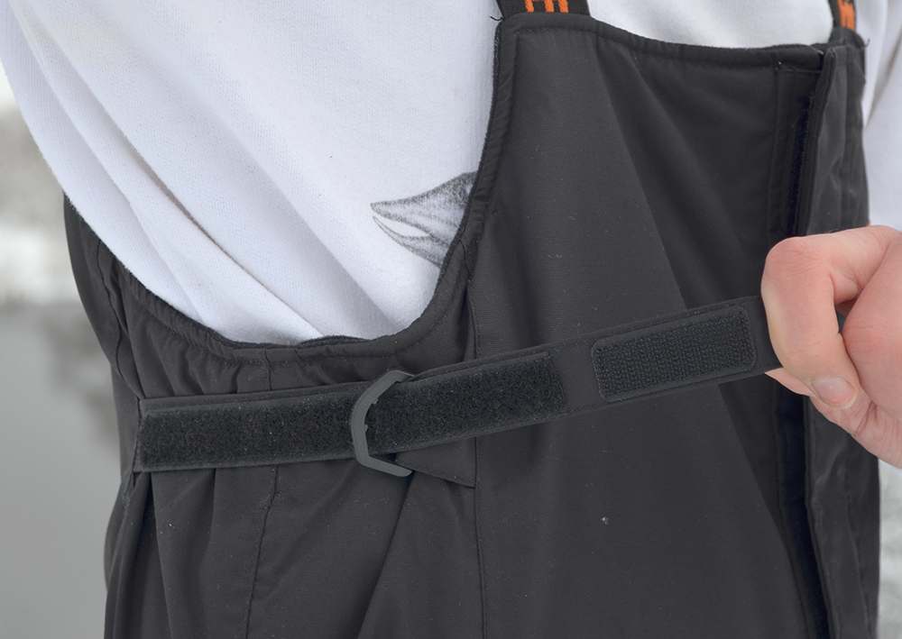 Сбоку комбинезона установлены стяжки на липучках, тонко и быстро подгоняющие ширину комбинезона по фигуре. Или по толщине поддевки. Чуть ниже имеются широкие шлевки под ремень.