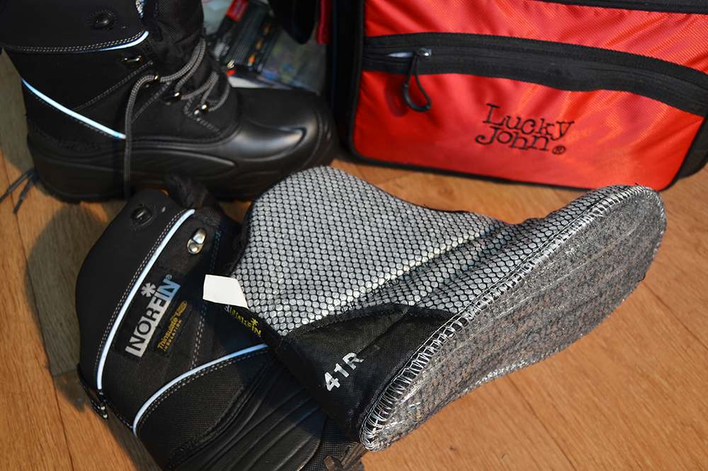 Таким образом, на выходе мы имеем что-то вроде трекинговых ботинок, удачно сочетающих в себе не только возможность много ходить, но и долго стоять на месте, не обмерзая. Вторая выгодная сторона – они значительно компактнее сапог. Особенно эта компактность вспоминается в небольшой ПВХ-лодке, где два человека, две сумки и шесть удочек, не считая опциональной лодочной утвари. Ну и, как мне кажется, они будут удобны для рыбаков с машинами, которые вынуждены после рыбалки переобуваться в более пригодную обувь для вождения, нежели сапоги.