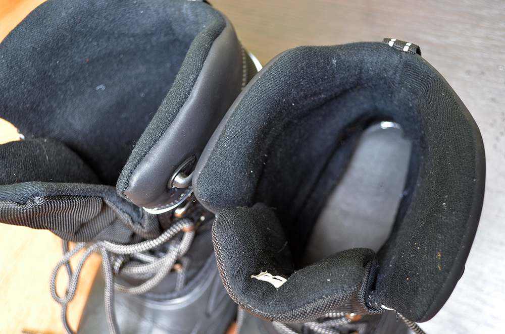 Верхняя часть ботинок имеет увеличенный объем, который способствует сохранению тепла внутри обуви. Внешний материал голенища – нейлон и полиуретан. Верх голенища дополнительно отделан вставками из тинсулейта, который одновременно является и утеплителем, и своего рода формовочной массой для более точного прилегания к ноге. Это сочетание работает по принципу золотой середины в соотношении цена/прочность/вес/непромокаемость.