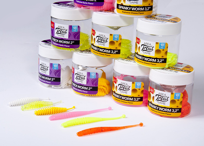 Приманки TRICK WORM сделаны в форме личинки насекомого и пропитаны аттрактантом с запахом чеснока. Приманки SPANKY WORM имеют форму червя, очень популярного в форелевой рыбалке и пропитаны аттрактантом с запахом сыра. Оба вида приманок представлены в шести ярких, максимально востребованных расцветках для ловли форели. Приманки также будут актуальны в микроджиговой ловле окуня и в морской рыбалке в стиле «Rock Fishing».