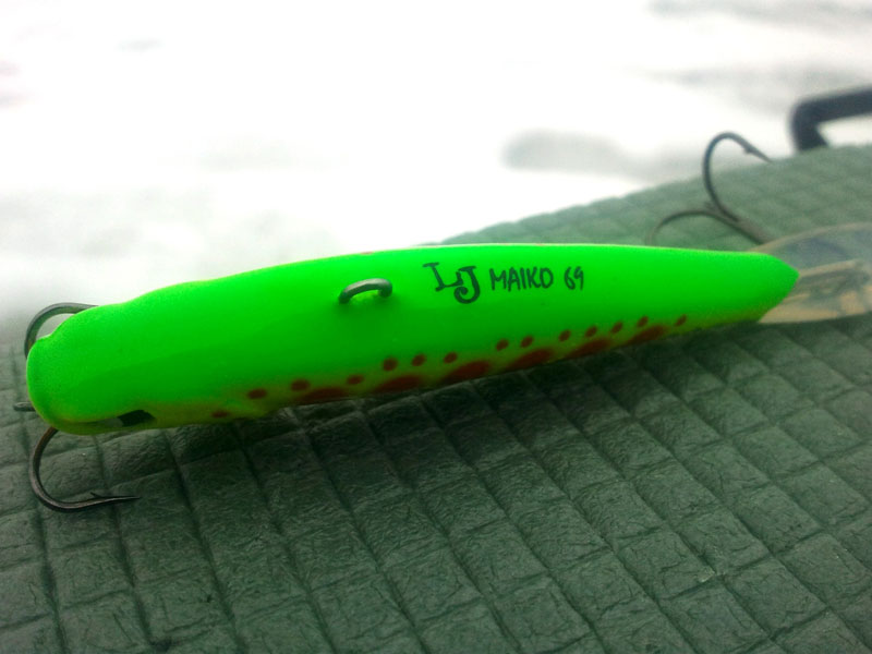 Первой проблемой для меня оказался вес приманок. В сравнении с классическими балансирами такого же размера, Maiko оказался очень легким. Приманка медленно тонула, темп ловли резко снижался, кроме того потребовалось использование более тонких лесок, чтобы хоть как-то ускорить ее заглубление. Плюс ко всему, приманка имеет своеобразную игру – она не выписывает классические восьмерки как другие балансиры. Maiko просто медленно тонет, соблазнительно покачивая боками, как говорят рыболовы – «сыпется».