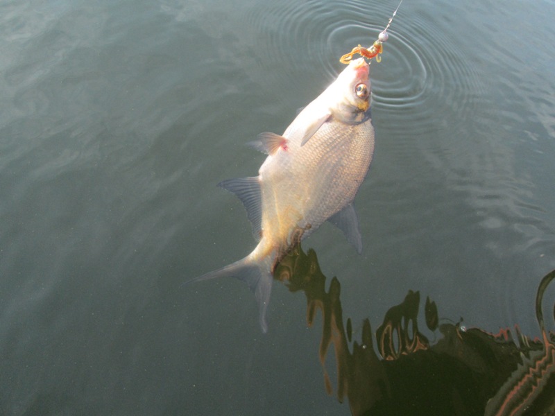 При быстрой поисковой проводке рыскает по дну из стороны в сторону с собственной игрой. Если на обычный силикон есть невнятные поклевки, а результативные подсечки отсутствуют, я сразу ставлю S-Shad в размере 2,8. Проводка: два энергичных рывка кончиком удилища с последующим выбиранием свободной плетни, 2-3 оборота катушки, затем пауза 1-2 секунды. Как правило, окунь, судак глубоко берут приманку во время паузы, и проблемы с результативной подсечкой исчезают. Случается, во время паузы наблюдаю легкое пощипывание приманки – так клюет лещ. Паузу увеличиваю до 5-6 сек, после пощипывания идет легкая потяжка, во время которой делаю подсечку, лещ оказывается на крючке. Это не случайные поимки белой рыбы, получалось на S-Shad ловить леща серийно.