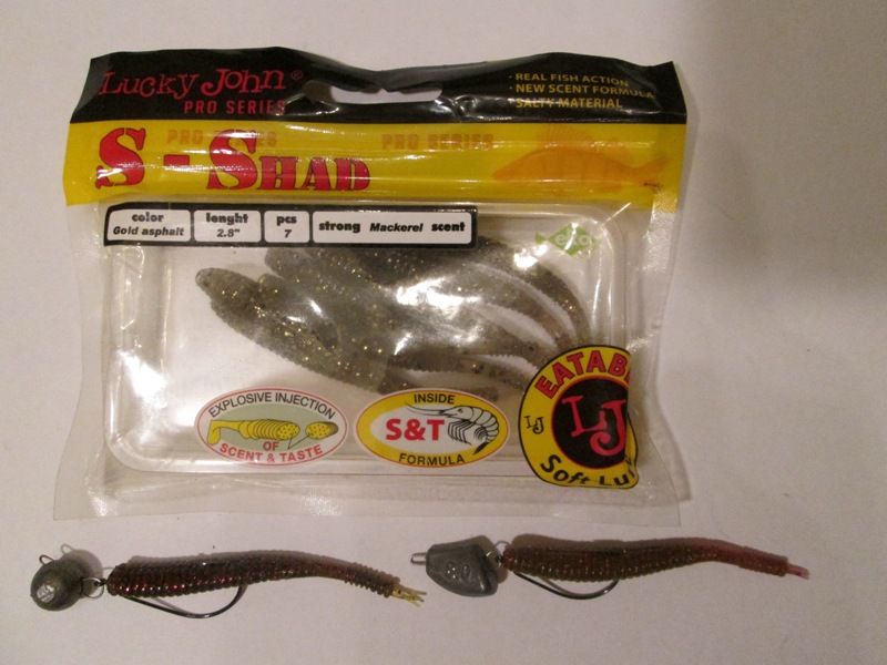 Вторая приманка L.J. S-Shad относится к слагам, имеет вытянутое червеобразное тело, сужающееся к хвостику. Хвостик немного утолщен, на конце два маленьких щупальца. Имеет запах и вкус креветки, 12 различных расцветок, выпускается в трех размерах: 2,8; 3,8 и 5,2 дюйма.