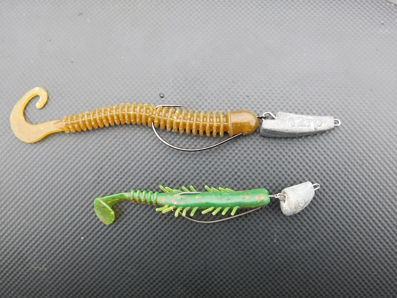 Ловить обоих получалось исключительно на мягкие приманки в незацепляющемся варианте – в основном на съедобную резину, оснащенную на офсетном крючке. В противном случае – многочисленные зацепы регулярно отвлекали бы от ловли. Их (зацепов) и так было немало, но абсолютное большинство приманок удавалось освобождать – «отстреливая» или снимаясь с якоря. А вот о выборе и оснащении приманок я и хочу рассказать.