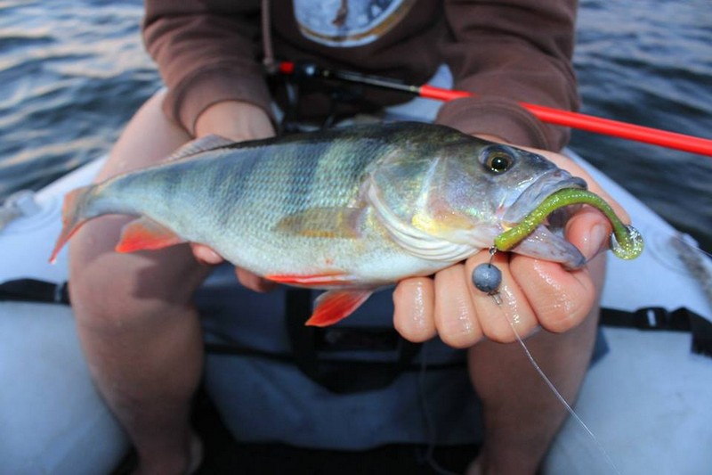 Характерной особенностью этого виброхвоста перед другими является его вытянутая и приплюснутая с боков форма тела, плавно переходящая в небольшой хвост с тяжелый пяткой. Именно за счет тонкого перешейка и тяжелого хвостового пятака на предельно медленных проводках и на падении приманка вальяжно играет хвостом. За счет широких и размашистых движений массивного хвоста, приманка создает сильную ударную волну, что позволяет привлечь хищника с большого расстояния. Провожу данный виброхвост в основном плавными подъемами удилища и потяжками с проволочкой по дну, реже применяем двойной подрыв удилищем. Применяем также и равномерную проводку. У меня отец очень любит проводить «Лонг Джона» медленной «равномеркой». Как показала практика, такие проводки с успехом воспринимаются окунями.