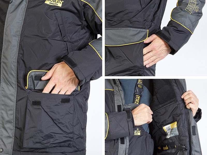 Имеет 6 внешних карманов. Два нагрудных кармана с мягкой микрофлисовой подкладкой – отлично подходят как для отогревания рук, так и для различных необходимых мелочей. Два внешних сдвоенных кармана на застежках Velcro. Один внутренний карман на молнии, с мягкой флисовой подкладкой, для хранения смартфона, навигатора или других необходимых принадлежностей.