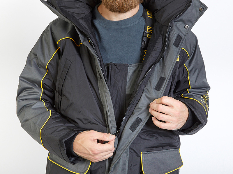 Основным утеплителем является материал THERMO GUARD — современный синтетический утеплитель, обладающий высокими прочностными и теплоизоляционными характеристиками. Костюм в целом имеет свободный анатомичный крой, не стесняющий движения при активной зимней рыбалке. Теперь более подробно рассмотрим куртку и брюки, а так же остановимся на технических особенностях костюма.