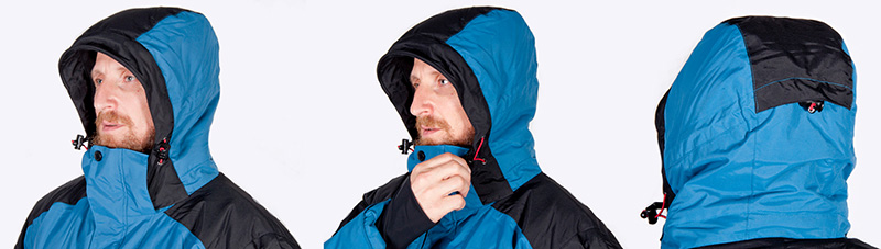 Куртка имеет высокий воротник и отстегивающийся капюшон. Капюшон куртки имеет анатомичный крой с флисовой подкладкой. Оснащен эластичными стяжками с фиксаторами для регулировки объема в двух плоскостях.