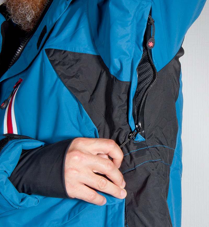 Так же под каждым рукавом куртки имеется система вентиляции на двусторонних молниях YKK ®.