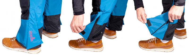 Манжеты брюк оснащены молниями YKK ® и регулировкой объема на застежках Velcro.