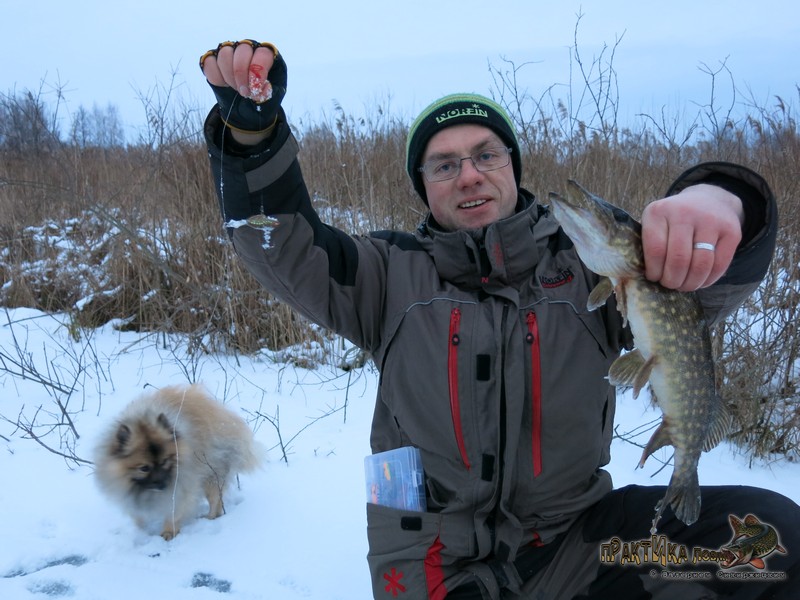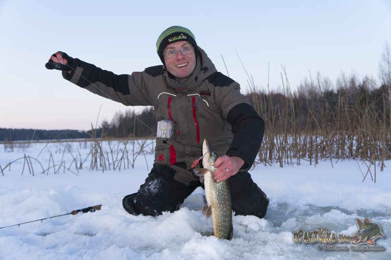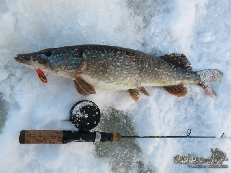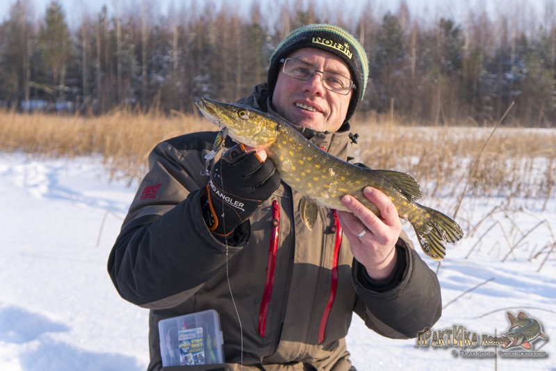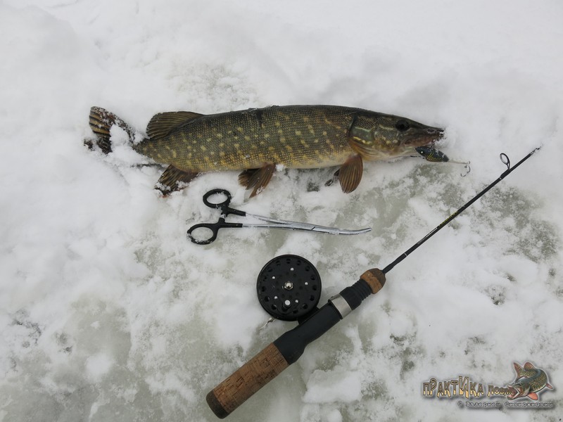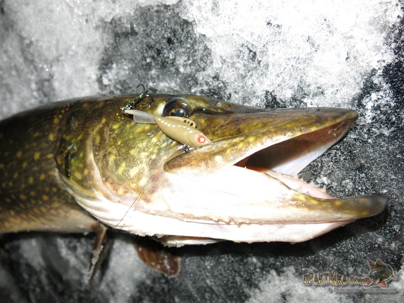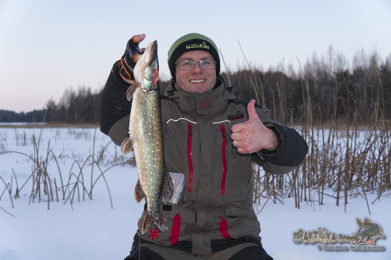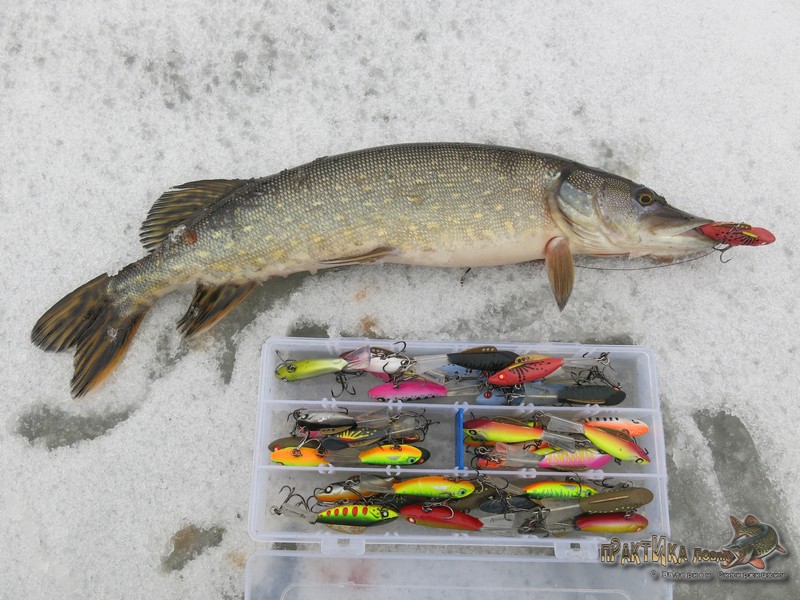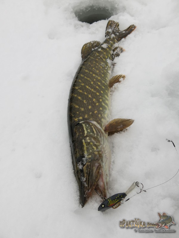Таким образом, 2 февраля я окончательно закрепил веру в эту расцветку, после чего она порадовала еще не раз. В том числе принесла такую важную щуку-полторашку на съемках «Практики ловли» на одной из последних февральских рыбалок, а также помогла занять 3 место на фестивале по зимнему блеснению (кроме парочки щук на красный «Мебару» тогда был пойман и окунь).