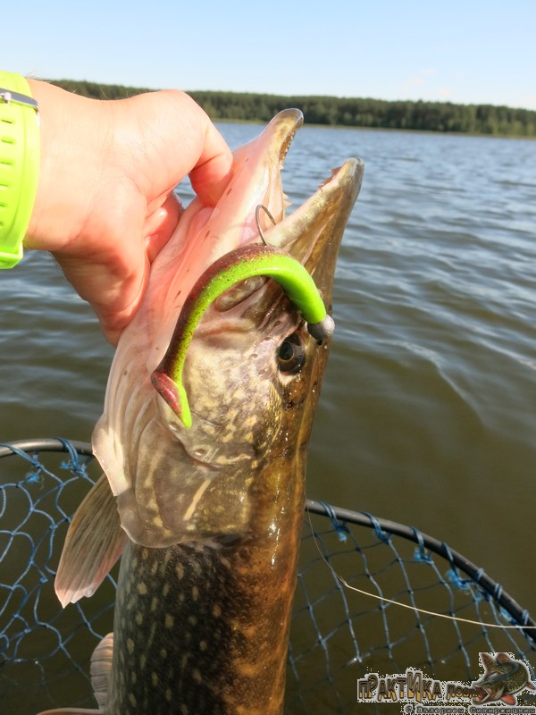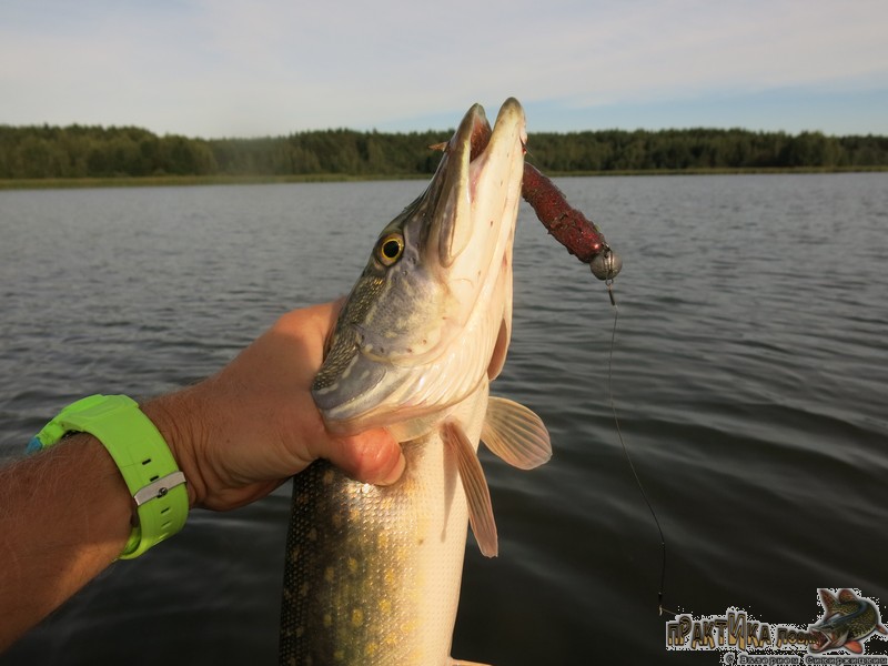 Характер поклевок еще очень различен. Первая «трешка» просто повисла на приманке, когда та только подошла к свалу. Но мощный спиннинг хорошо просекает хищницу даже при таких слабых контактах с рыбой, когда я толком не успеваю распознать поклевку. Вторая щука, уже покрупнее, атакует LJ Minnow 5,5 уже на подъеме приманки к лодке. В этот раз поклевка на подмотке – единственная за рыбалку. И снова засечка надежная. Понимаю, что снасть подобрал правильно – Treno и ступеньку передает, и поклевки фиксирует, и с рыбой справляется без проблем.