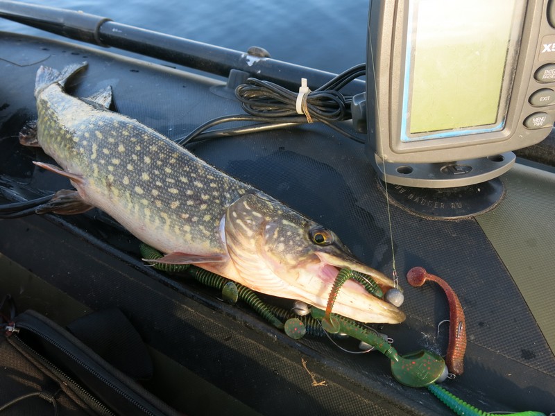 Кроме «десятки» попадались щуки примерно от полутора килограмм весом, и все поклевки были по классике – на джиговых паузах. Хотя прежние годы иногда срабатывала и пелагическая проводка, без опускания приманки на дно.