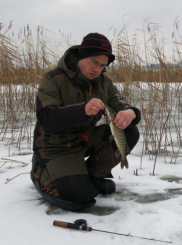 210. Заинтересовал он меняеще прошлой весной, когда на закрытии сезона тот же Юра неожиданно выловил на него щуку на «кило триста». В прозрачной воде. Провел аналогии – и попробовал на чистых торфяниках. Сначала поклевки, а потом и щуки пошли на темно-серый с желтой кляксой регулярно. Но почему-то недолго. Все щуки и поклевки – в первой половине зимы. Хотя может это потому, что стал ловить на водоемах с мутной водой. Можно записать в актив 210-го Mebaru и пару торфяных окуней, в том числе самого первого «мебарного».