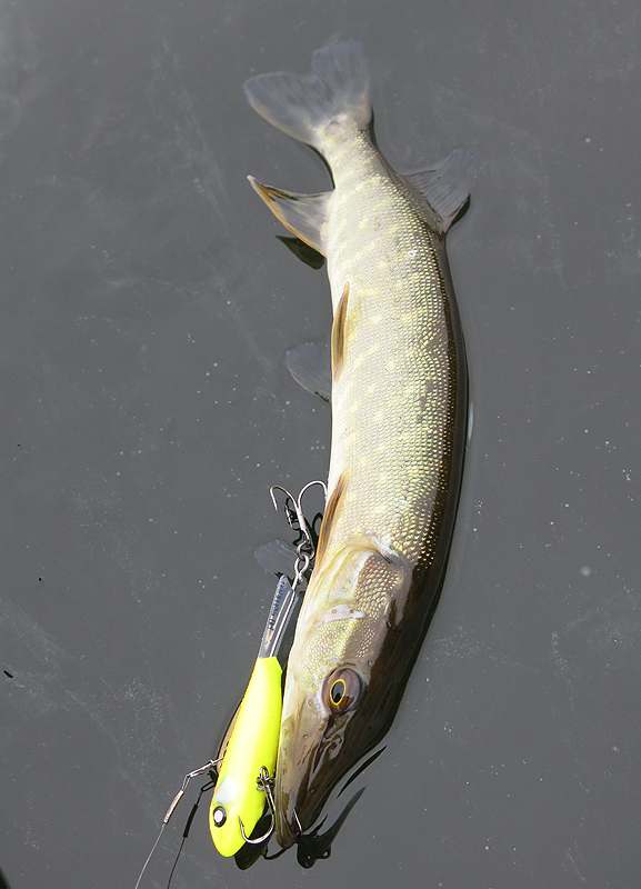 211. Только поставил – сразу поймал. Щучка тоже небольшая. Цвет показался излишне ярким, но может найти себе применение в мутной воде и сумерках.