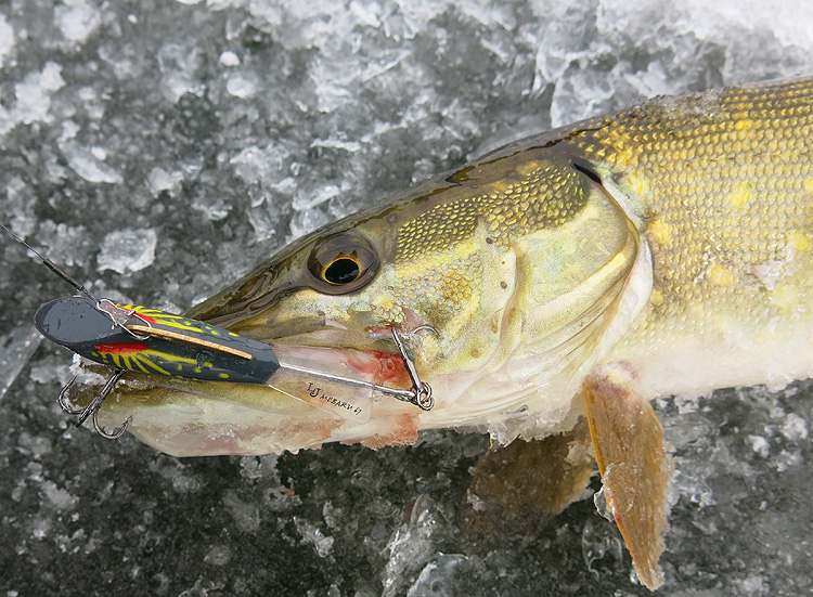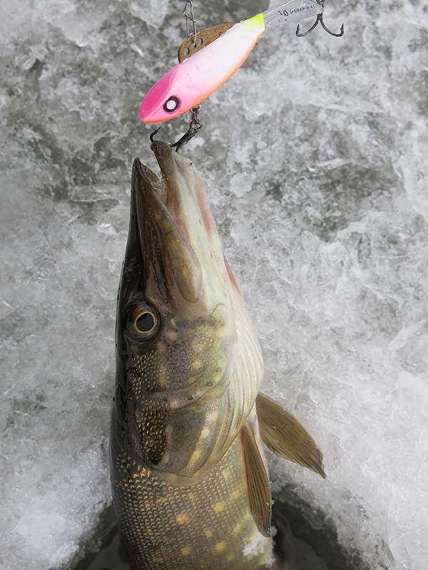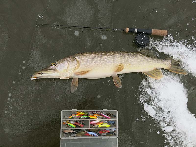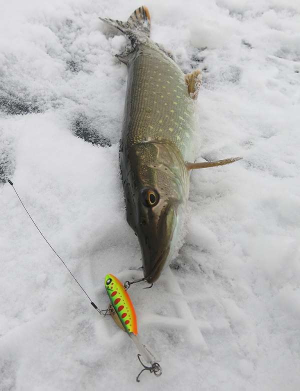 Разловив новую приманку еще прошлой зимой и не особо экспериментируя с расцветками, в этом сезоне я собрал все 13 доступных цветовых вариантов Mebaru. Увы, 114-й цвет нигде не появился, оставшись таким образом в планах на будущий год. Зато имевшиеся в наличии так или иначе получилось разловить. Хотелось на все поймать и сфотографировать с приманками щуку, но иногда стечение обстоятельств мешало это сделать. Тем не менее конечным результатом цветового тестирования я остался доволен, ведь по сути доказал главное – все расцветки Mebaru ловят щуку!