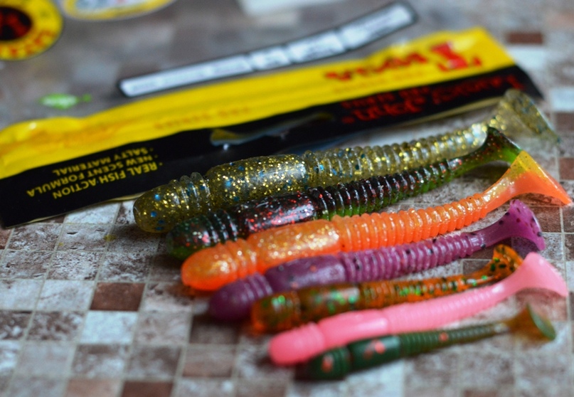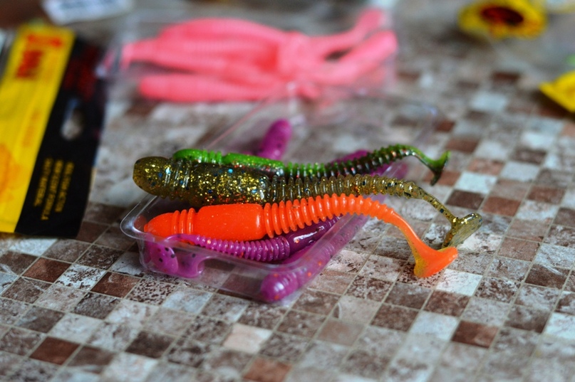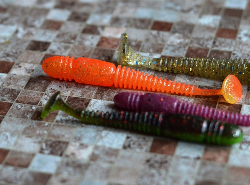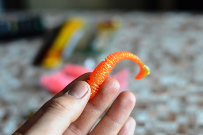 Из перечня «Тиог» можно отметить легкий вес резины вне зависимости от ее размера. Эти виброхвосты и правда несильно нагружают удилище и при забросе и на проводке.