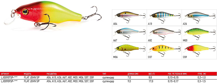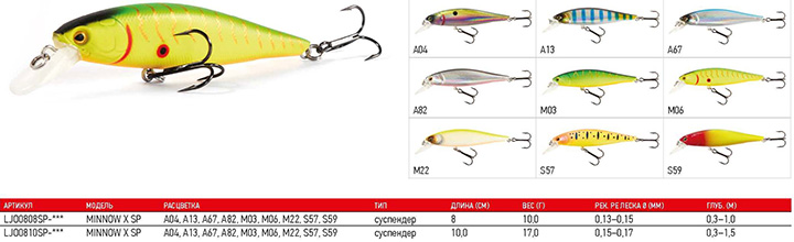 Воблер с нейтральной плавучестью производится в двух размерах: 70 и 90 мм. Приманка хорошо работает при различных проводках: равномерной и активном твичинге. Легка в управлении – с ней быстро находят «общий язык» абсолютно все новички в спиннинговой рыбалке. Система дальнего заброса увеличила дальнобойность приманки на 20%. Основная рыба, для которой разрабатывалась приманка: щука и окунь.