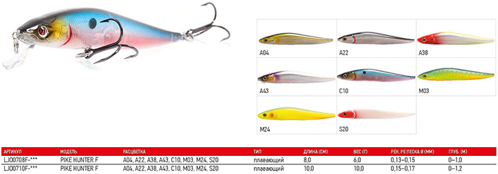 Универсальная модель приманки, специально разработанной для ловли щуки. Производится в нейтральном исполнении плавучести и двух размерах: 8 и 10 см. Воблер легко управляется и хорошо зарекомендовал себя на разных типах проводки: жестком и мягком твичинге, а также на равномерной проводке с остановками. Обладает хорошими полетными характеристиками и оснащен острыми и прочными тройниками.
