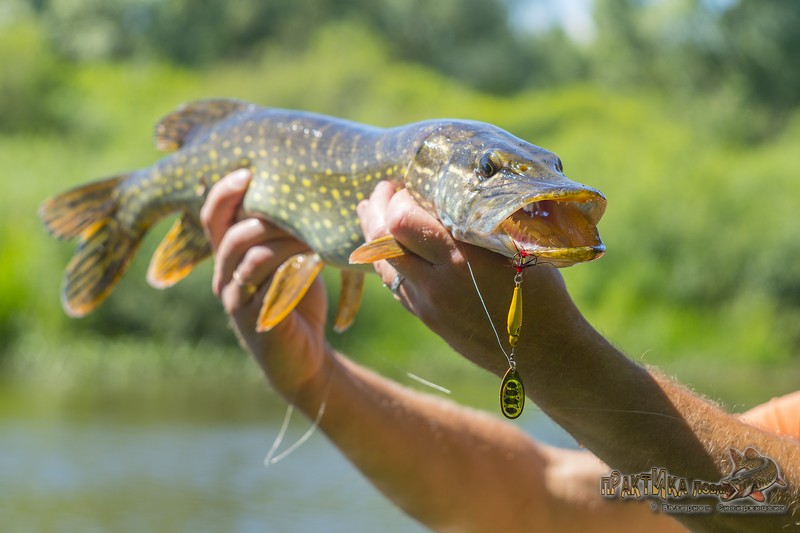 Интересно, что щучьи поклевки у меня случались на погружении приманки сразу же после заброса, в первую очередь такое происходило на реке. Так, например, удалось поймать неплохую щуку во время съемок прошлым летом передачи из серии «Практика ловли» – «Речная ловля на вертушки». После подобных случаев я стал чаще делать паузы и во время проводки, давая блесне возможность заглубиться или вообще прилечь на дно. Такая ступенчатая проводка «а-ля джиг» хорошо работает у меня именно с этой моделью. Особенно актуальны остановки на течении, когда ведете блесну даунстримом.