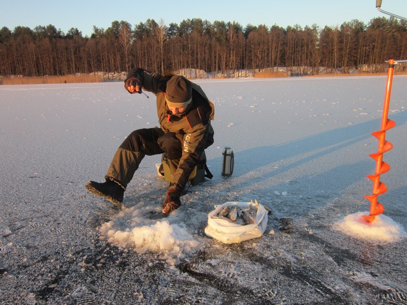 Расстояние между лунками у меня доходит до 10 метров. Когда больше, затея использовать несколько удильников бессмысленна, ибо оставленные у лунок, они окажутся вне пределов видимости и если на мормышку «сядет» даже мелкий подлещик, велика вероятность, что он утянет удочку за собой. Знаю, что во избежание таких случаев некоторые рыболовы используют дополнительные пластиковые крышки с прорезями, которыми накрывают лунки по типу жерличных подставок, однако сам я не разделяю такую позицию. Активная рыбалка превращается в некое подобие доночной ловли.