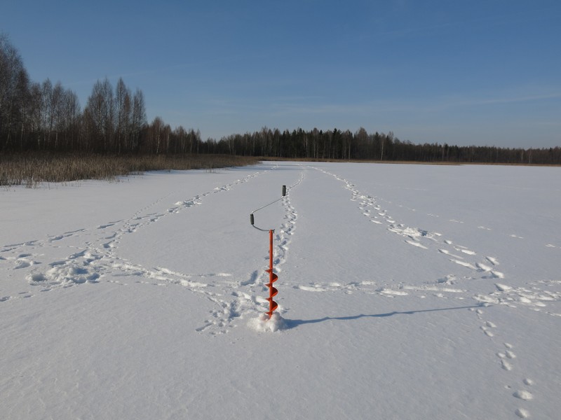Здесь напрашивается еще один тактический подход – это проверка не сегодняшних лунок, а сделанных, например, несколько дней назад (и не обязательно вами). Такая ловля по старым лункам возможна только во время оттепелей. Если мороз был небольшой и лунки прихвачены слабо, то имеет смысл вскрыть их. На это уйдет однозначно меньше времени, чем если бы вы сверлили новые.