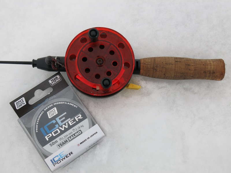 Одной из первых моих удочек для зимнего блеснения стало незамысловатое удилище длиной 40 см с пробковой ручкой и встроенной катушкой диаметром 75 мм. Сначала балансирил ей щуку, потом приспособил и под ловлю с кивком.