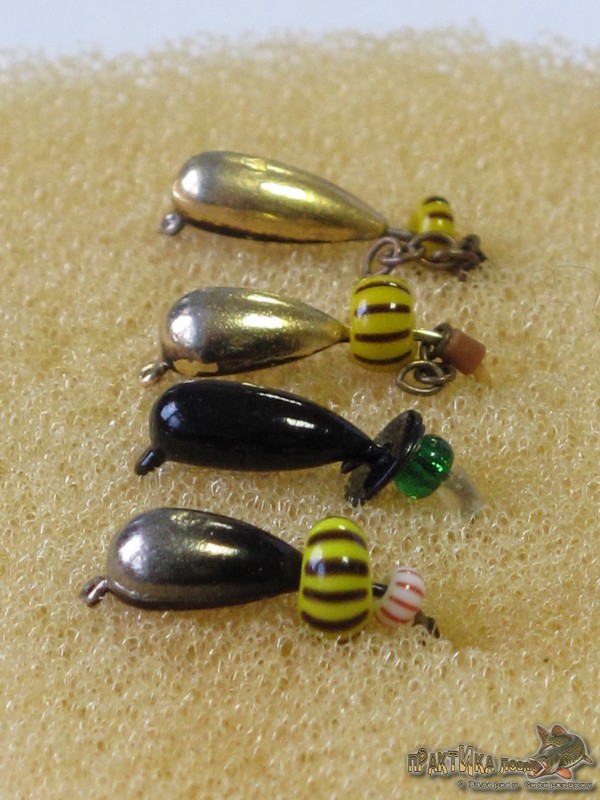 Второй тип безнасадочных мормышек из моей коллекции – этот приманки с какими-либо дополнениями на цевье крючка. Это может быть бисер, цепочка, кембрик, колечко, шарик и т.д. Среди таких приманок много самодельных, но немало и фирменных.