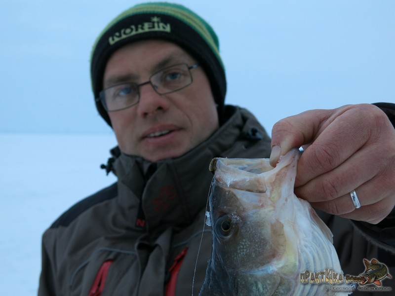 На одной лунке подолгу не задерживаюсь: это на балду иногда удается привлечь окуня к лунке издалека, подымая хорошее облако мути, или на балансир иногда удается полосатого хищника «раздразнить», на мормышку же предпочитаю «собирать» активную рыбу. Хотя, возможно, это тоже привычка осталась из рыболовного спорта, где ведется быстрый облов лунок.