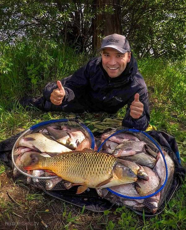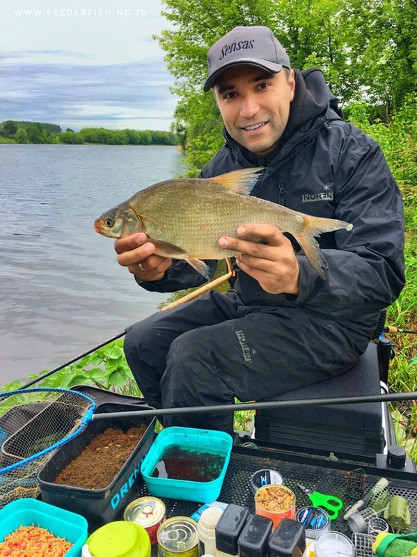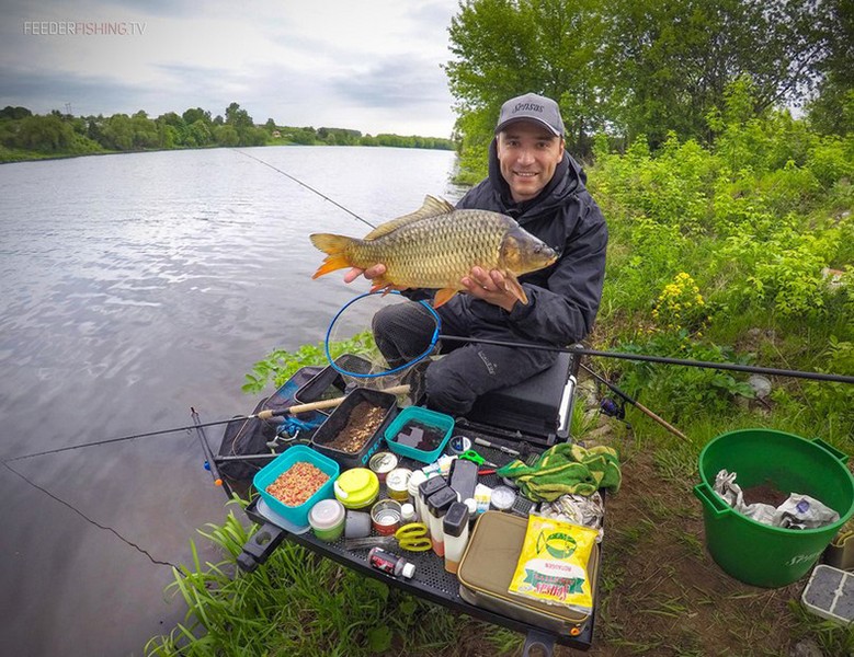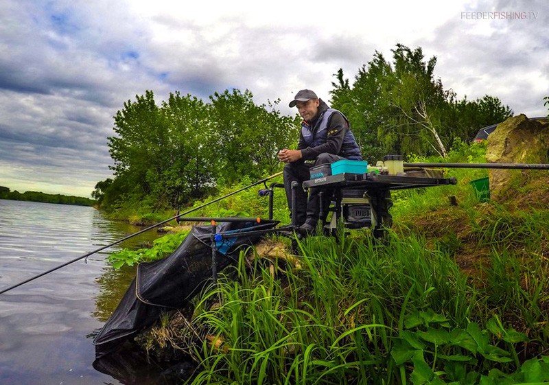 В момент ловли я переключался на стандартный объем кормушки-пули весом в 40 г, давая обильно живого компонента и зерновые смеси, удерживал рыбу в точке в течение всей сессии.