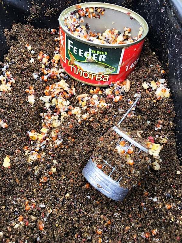 Стартовый закорм я делал большой кормушкой с малым весом, дабы не перегружать бланк, так как кидать приходилось под 40 м и достаточно точно.