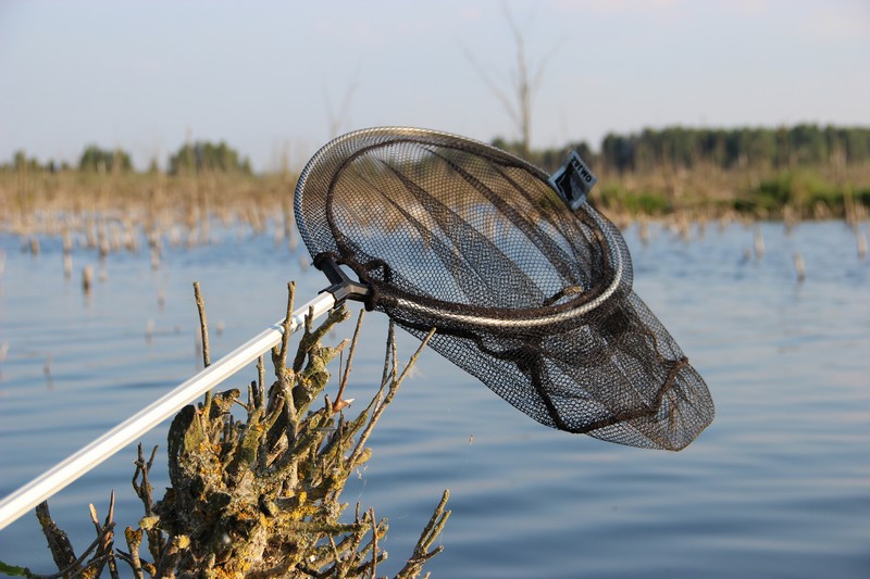 Подсак лучше выбрать наиболее прочный, с дюралевой, а не пластиковой рукояткой и широким обручем с сеткой. Без него справиться с линем крайне сложно.