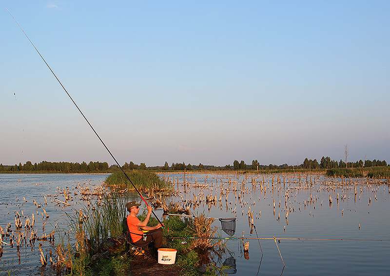Учитывая наличие на «картах» траншей-каналов, возникает перспектива испытать удачу, прикормив точки на свалах или по самому руслу. В большинстве известных мне торфяников средняя глубина таких каналов составляет порядка двух метров, наибольшая – в районе шести. На счет эффективности ловли в них сложилось неоднозначное мнение. Выдавались дни, когда подобная стратегия себя оправдывала и лини ловились хорошо, но бывало и наоборот. Причем даже в жаркие дни лини не хотели брать с русла, в то время как на «горячем» мелководье на глубине в 20-30 см клевали хорошо.